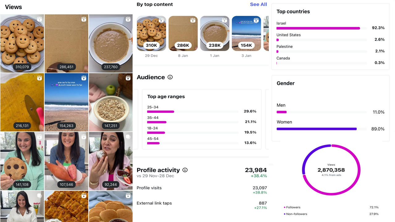 ניהול מקצועי של רשתות חברתיות (אינסטגרם, טיקטוק ופייסבוק) ליצירת נוכחות דיגיטלית חזקה של המותג שלכם ברשת.